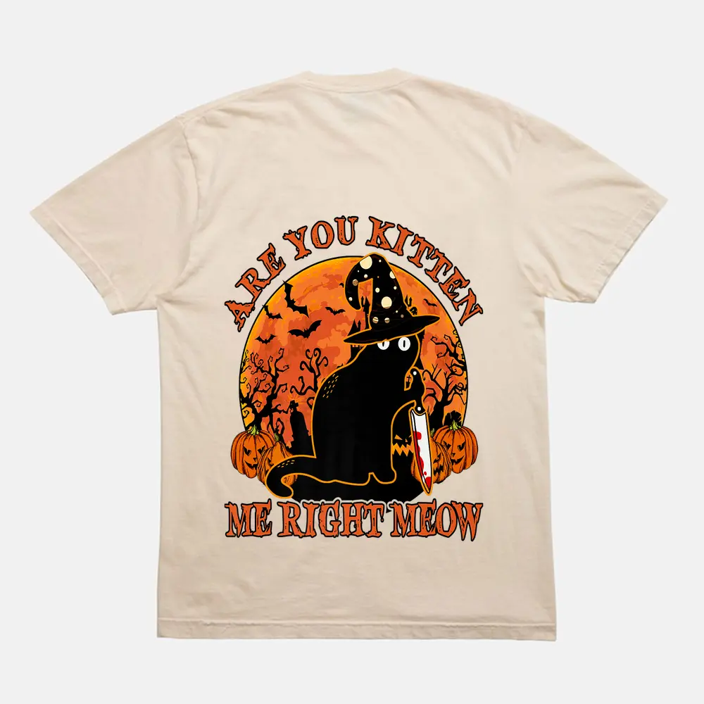 Are You Kitten Me Right Meow Black Cat Witch Knife Halloween T-Shirt – Cream