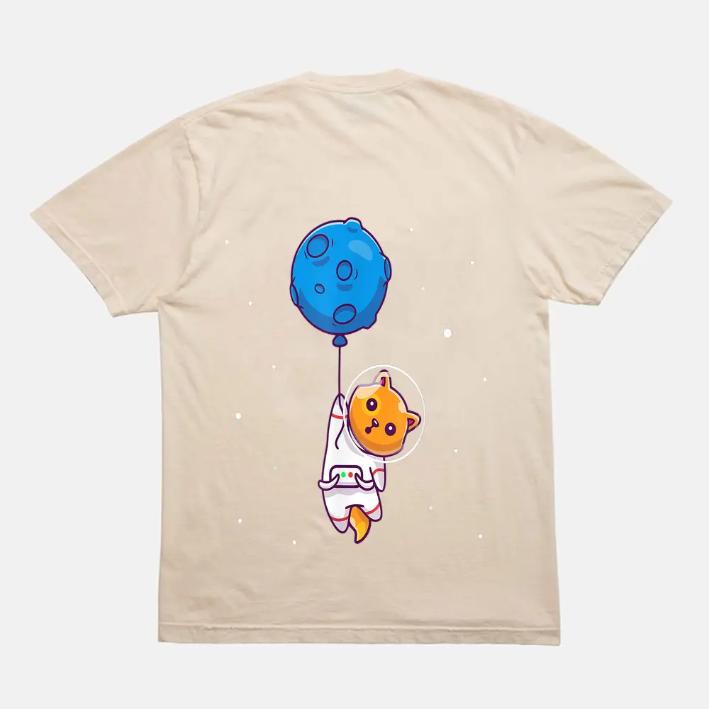 Astronaut Cat In Space Holding Planet Balloon Cat Lover T-Shirt – Cream