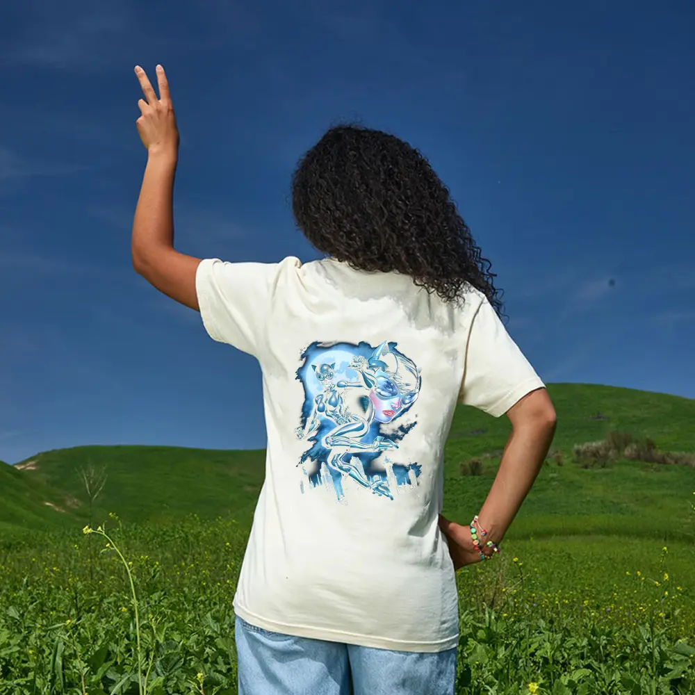 Twin needle sleeve and bottom hems. Quarter-turned to eliminate centre crease.