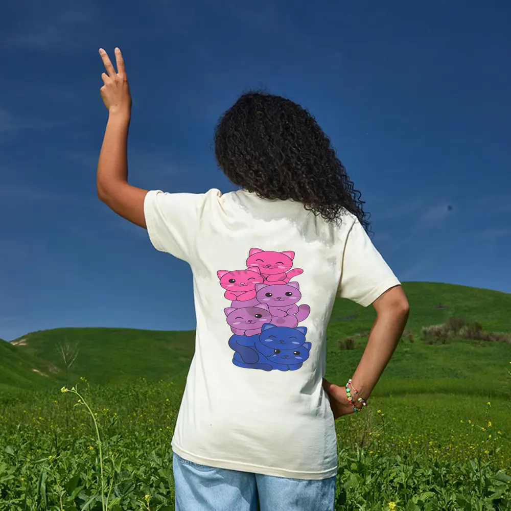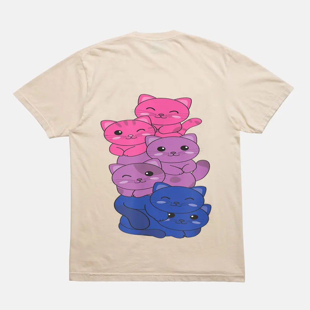 Bi Flag Pride LGBTQ Cats Bisexual Cat T-Shirt – Cream