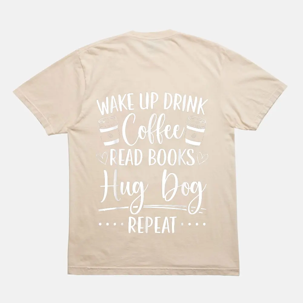 Books Dogs Coffee Bookworm Reading T-Shirt – Cream