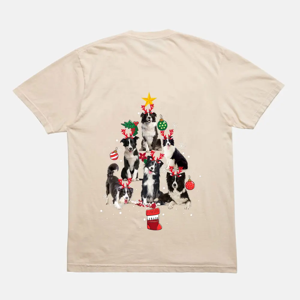 Border Collie Dog Christmas Tree Reindeer Antlers Gifts T-Shirt – Cream