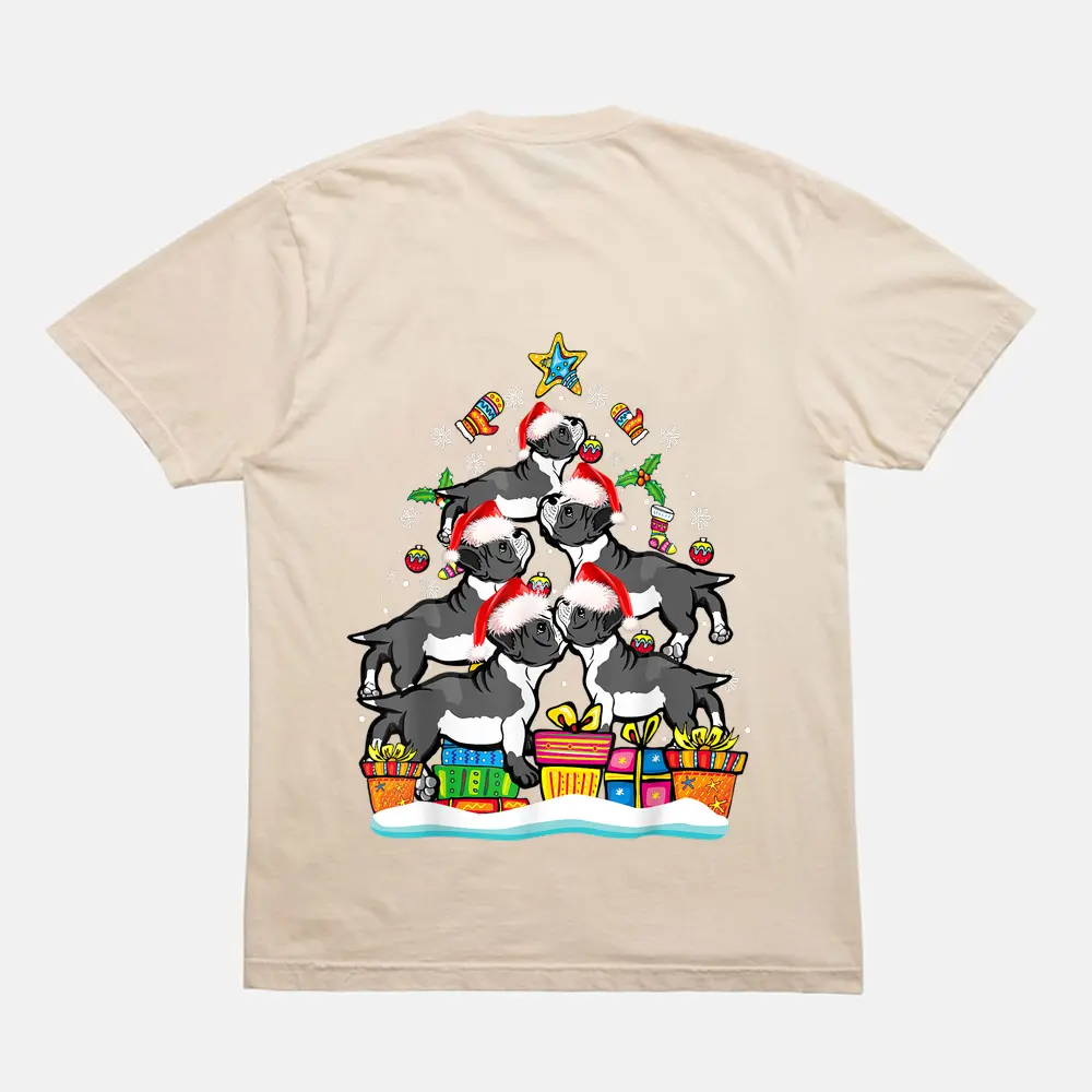 Boxer Christmas Tree Ornament Santa Hat Dog Lover Xmas T-Shirt – Cream