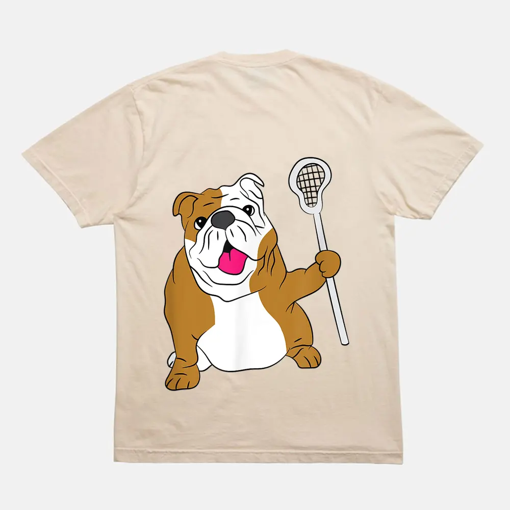 Bulldog Dog Lacrosse Design LAX Dad T-Shirt – Cream