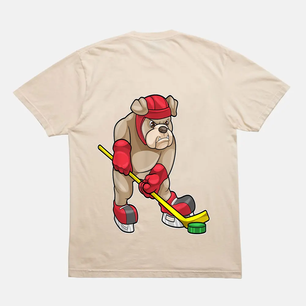 Bulldog Ice Hockey Ice Hockey Stick Sports T-Shirt – Cream