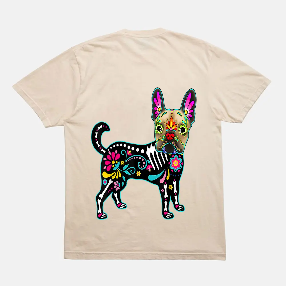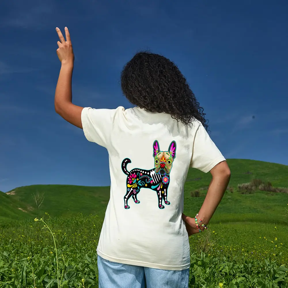 Calavera French Bulldog Frenchie Dia De Muertos Halloween T-Shirt – Cream