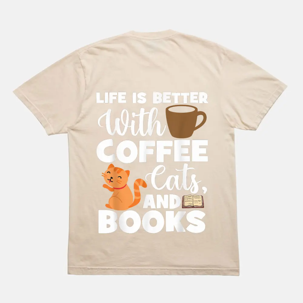 Cat Lovers Cats And Books Coffee Cats And Books Cat Books T-Shirt – Cream