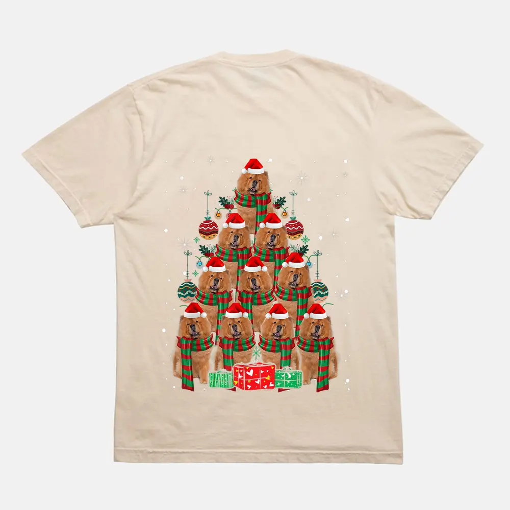 Chow Chow Dogs Tree Christmas Pajama Xmas Gifts Dog Lover T-Shirt – Cream