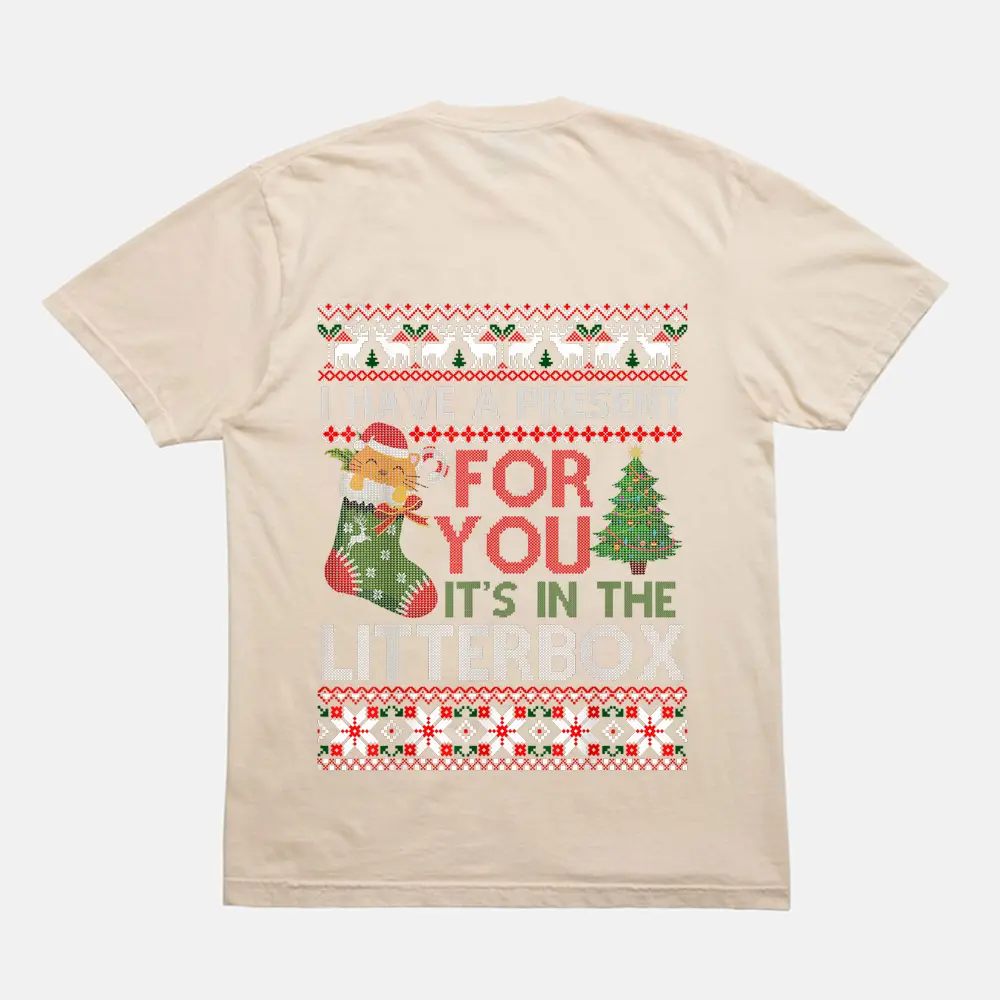 Christmas Cat Shirt – Have A Present For You Ugly Sweater T-Shirt – Cream
