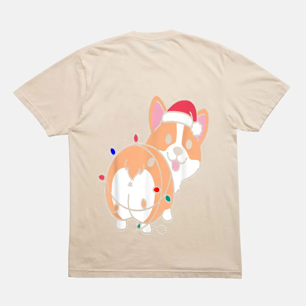 Christmas Corgi With Lights Gifts For Dog Lover Women Kids T-Shirt – Cream
