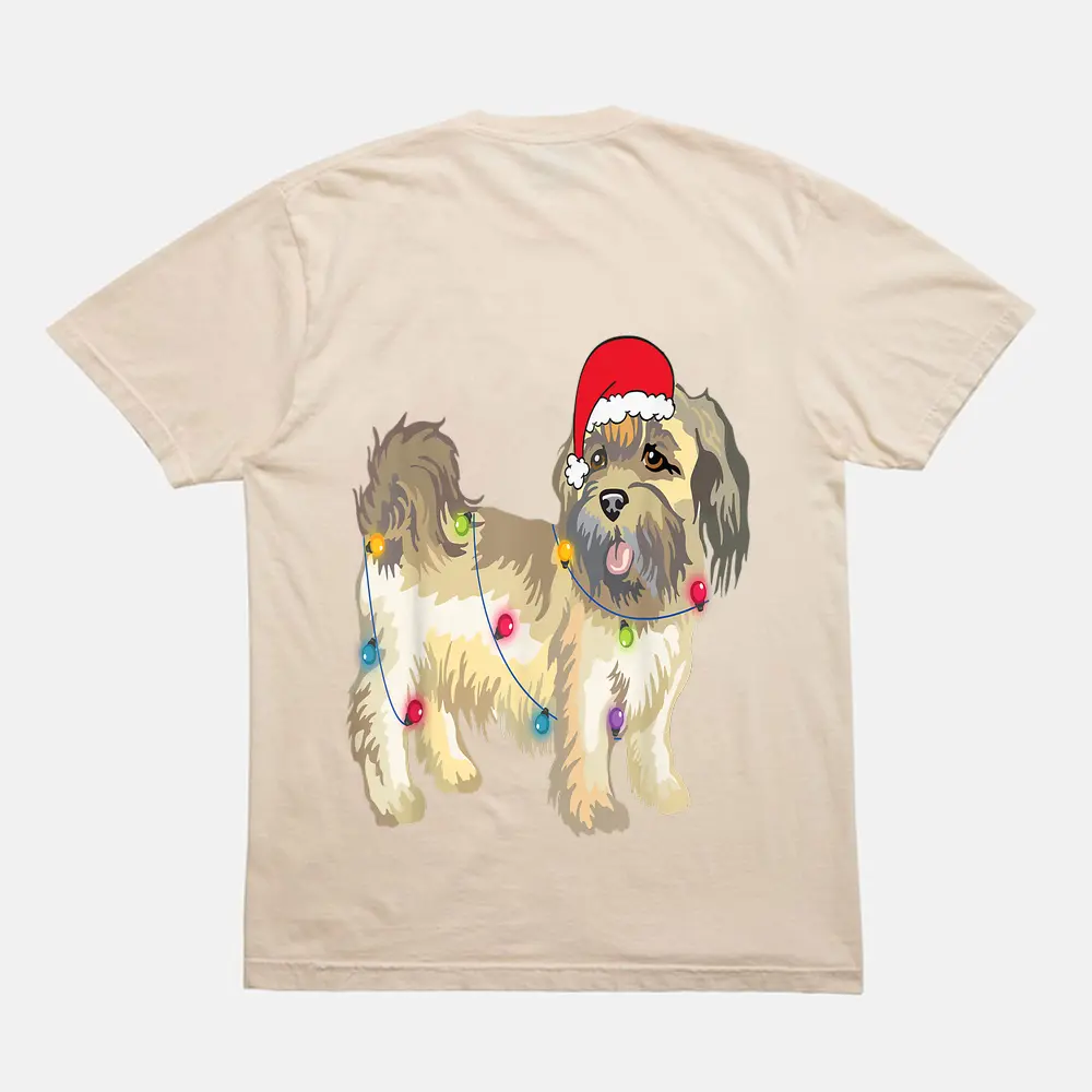 Christmas Funny Shitzu Dog Lover Santa Hat Lights Xmas Gifts T-Shirt – Cream