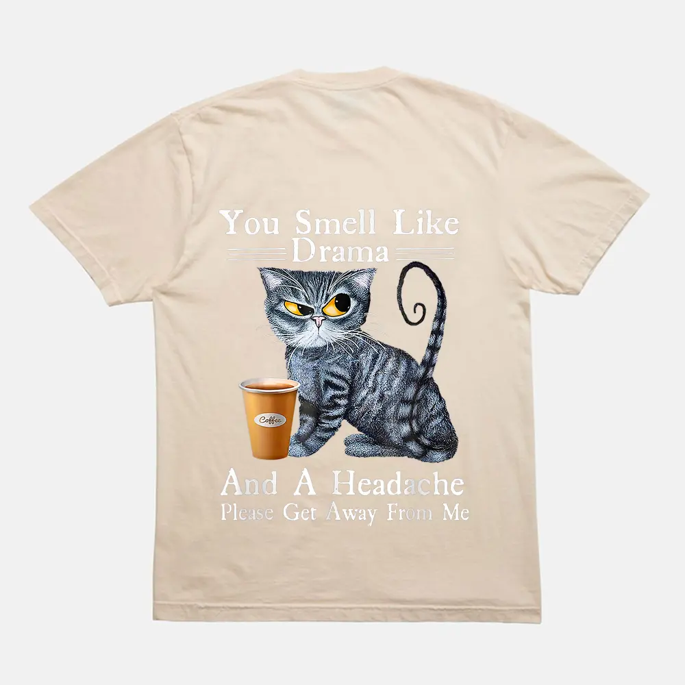 Coffee Cat You Smell Like Drama And A Headache Funny T-Shirt – Cream