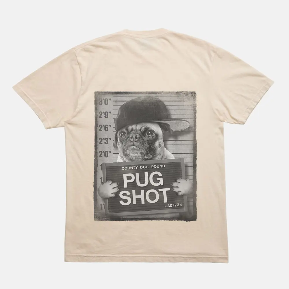 Trendy Graphic Pug Shot County Dog Pound Portrait T-Shirt – Cream