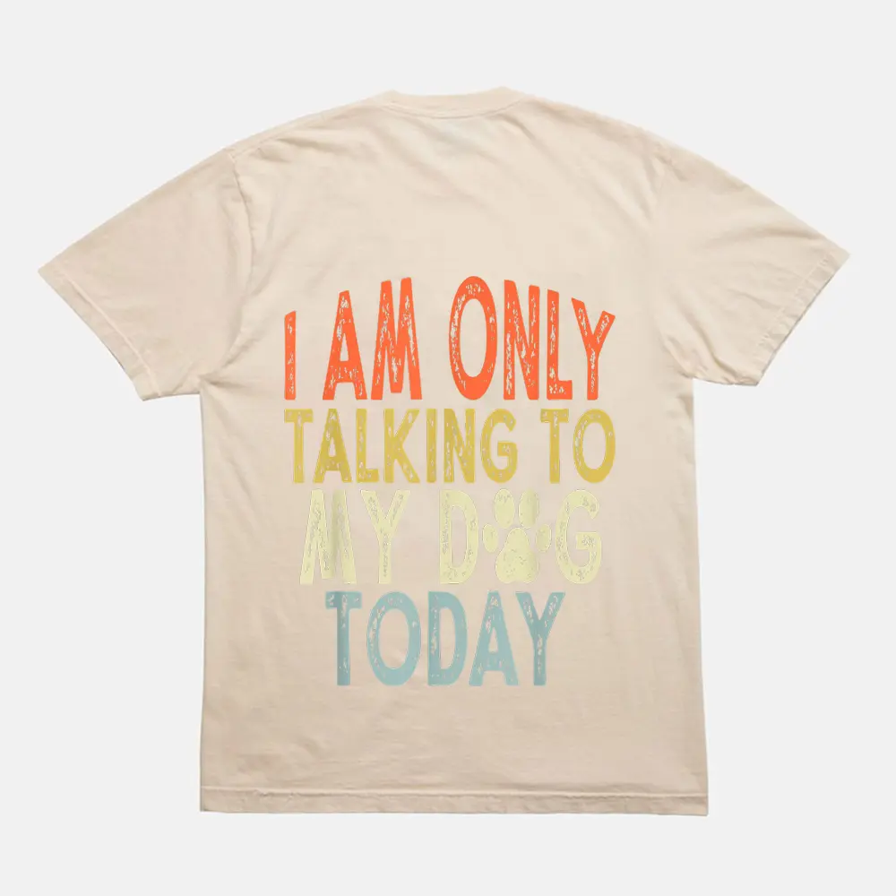 Vintage Funny I Am Only Talking To My Dog Today T-Shirt – Cream
