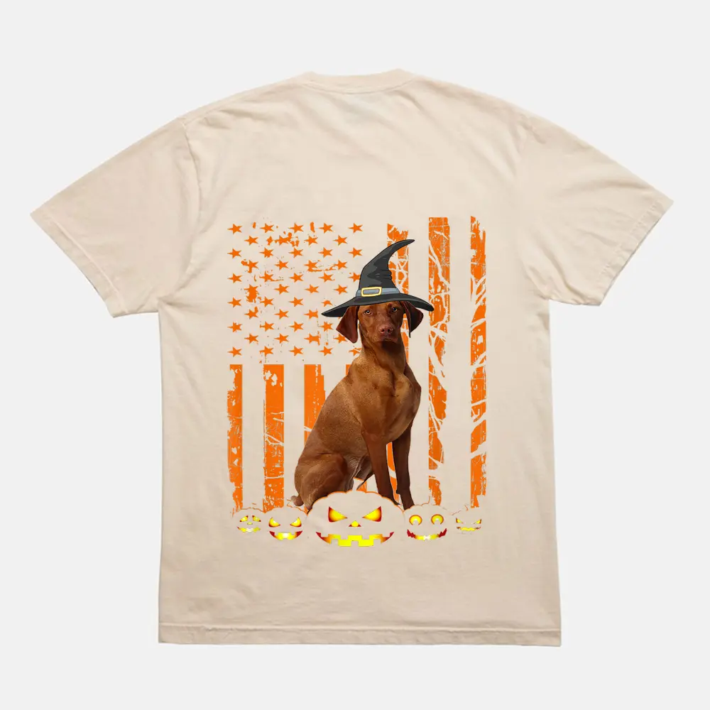 Vizsla Dog Pumpkin American Flag Vintage Halloween Gifts T-Shirt – Cream