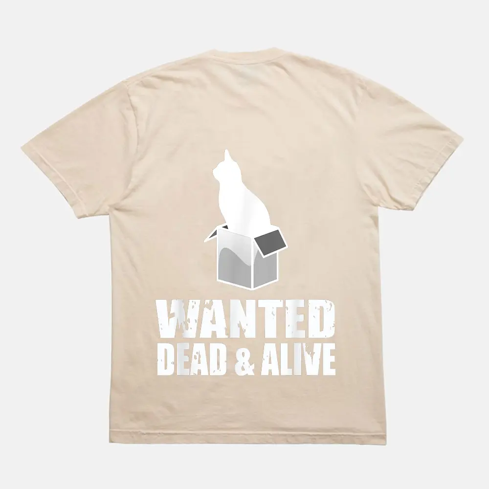 Wanted Dead And Alive Schrodingers Cat Box Experiment T-Shirt – Cream