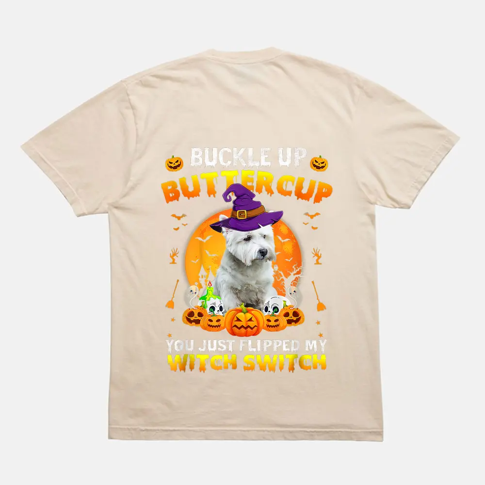 Westie Dog Buckle Up Buttercup Halloween Costume T-Shirt – Cream