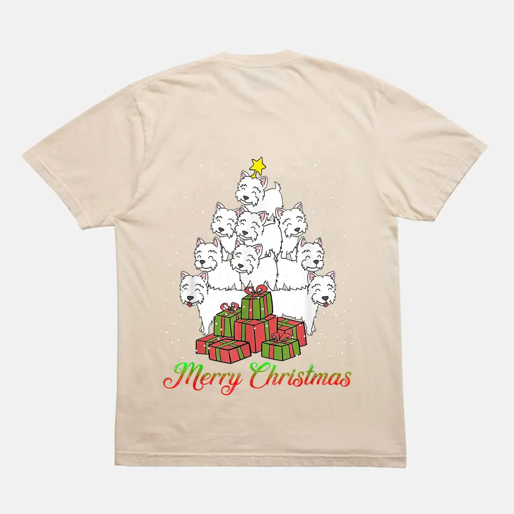 Westie Dog Lover Matching Santa Westie Christmas Tree T-Shirt – Cream