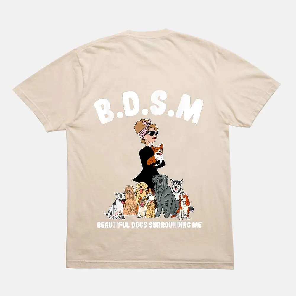 Women BDSM Beautiful Dogs Surrounding Me T-Shirt – Cream