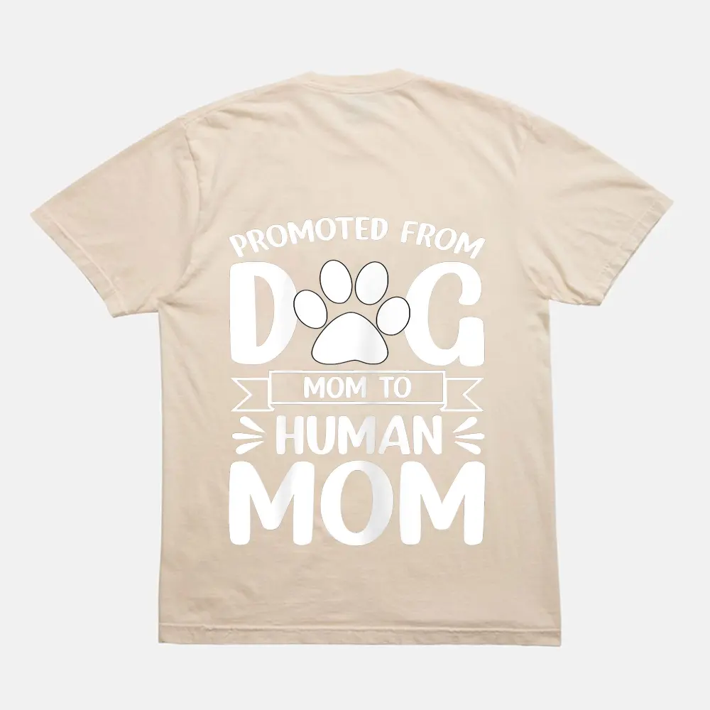 Womens Funny New Mom Baby Promoted From Dog Mom To Human Mom T-Shirt – Cream