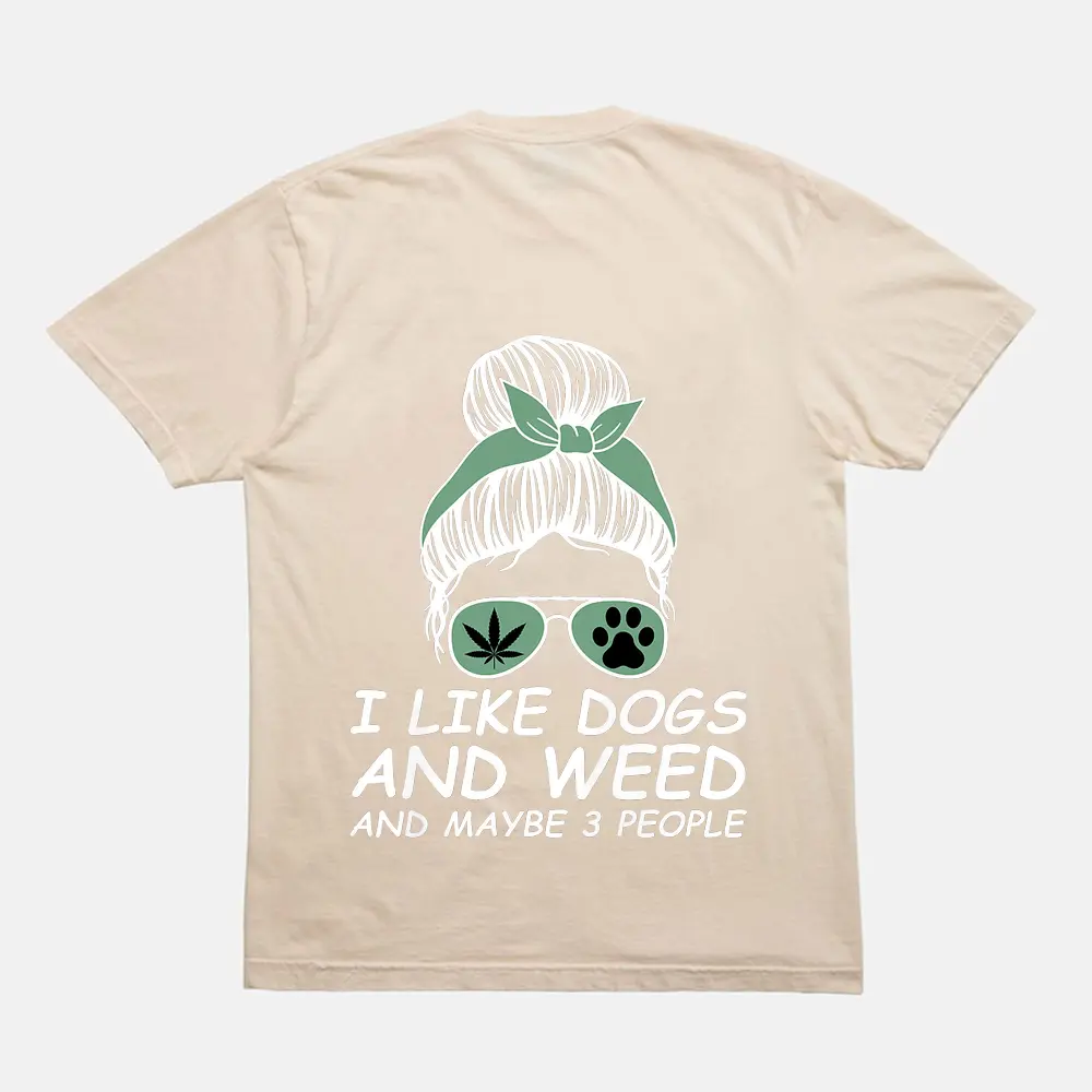Womens I Like Dogs And Weed And Maybe 3 People Messy Bun T-Shirt – Cream